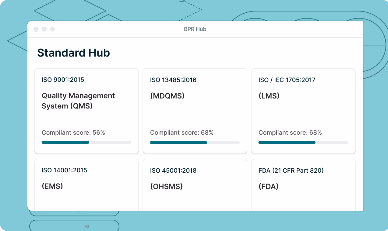 Consolidate multiple standards like ISO, FDA, and more with our Unified Compliance Framework. Stay on top of constantly evolving standards with expert guidance and eliminate duplicate paperwork and processes.